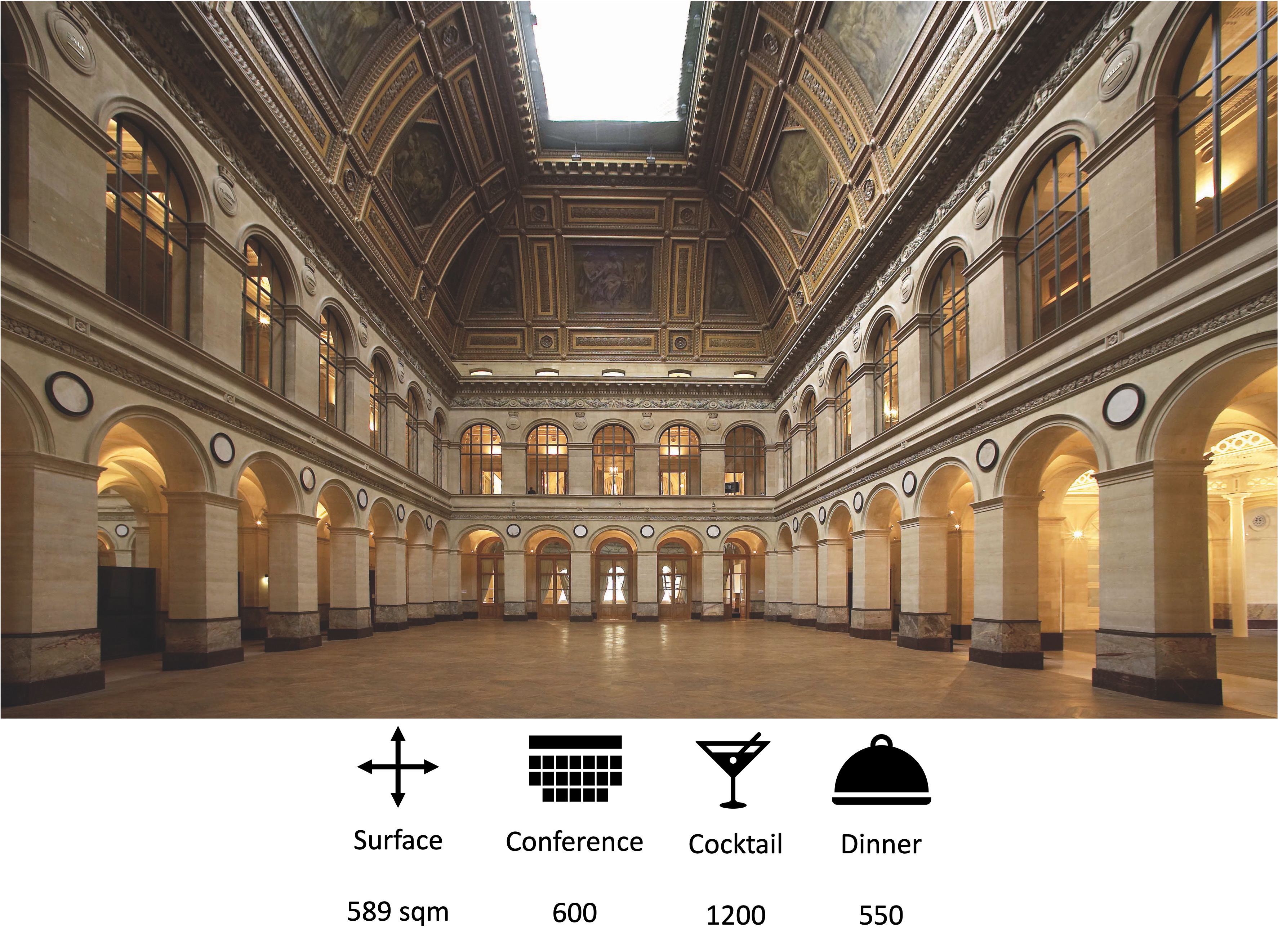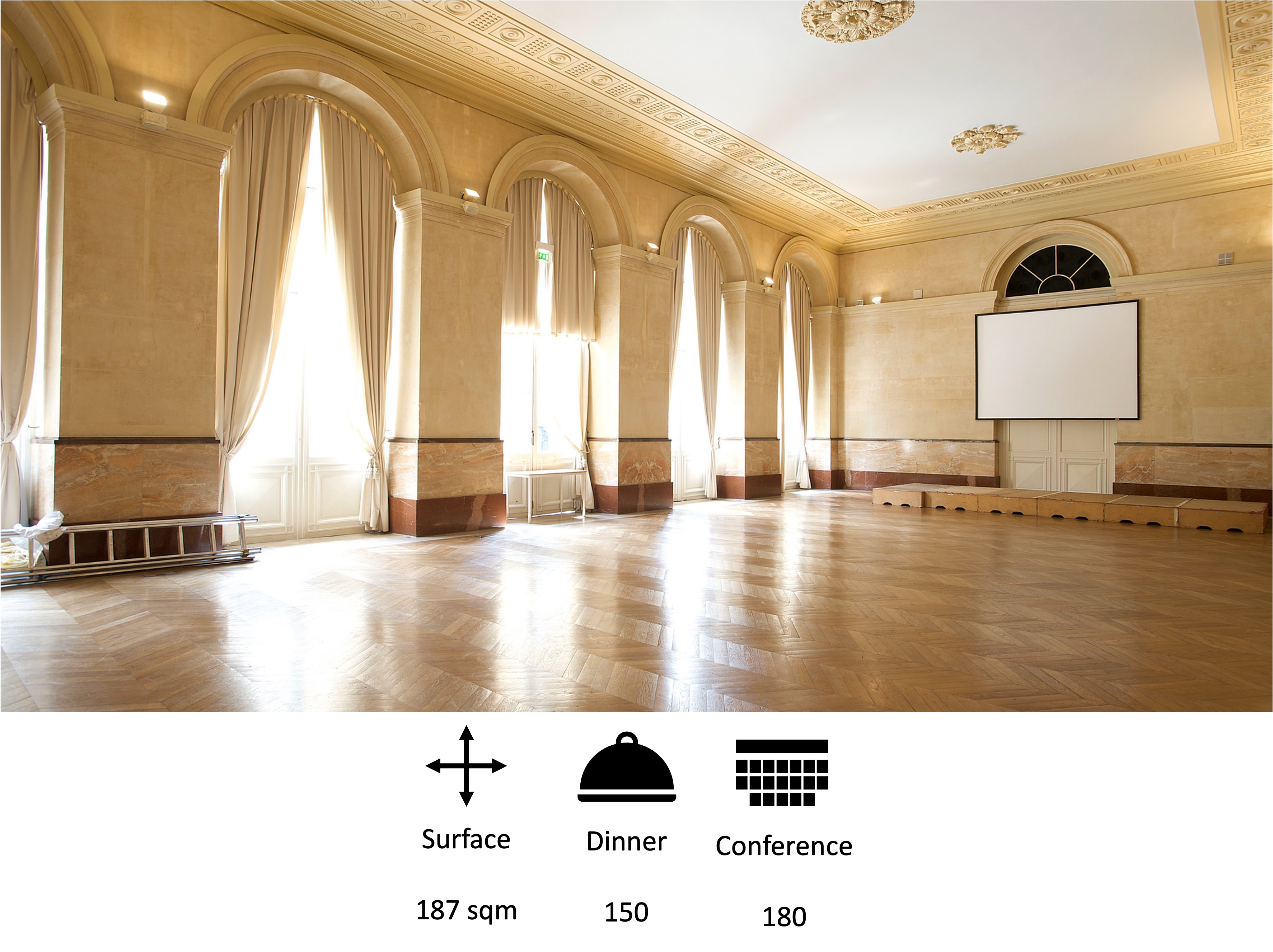 Steeped in history and witness of the great economic events since 1827, this room is a prestigious venue for the organization of dinners, galas, lounges, conventions, receptions... With a majestic marble entrance, the Nef, with its 28 meters high glass roof, enjoys a brightness that highlights its architecture. This authentic setting allows us to contrast with contemporary events, giving an incomparable character to events.